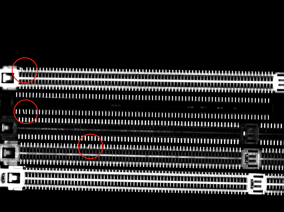 本項目需為客戶提供整套視覺檢測硬件??蛻舻漠a品為電腦卡槽,生產工序需檢測卡槽針腳有無、變形、通過視覺檢測設備,實現自動化識別,減少人力需求和提供工作效率。